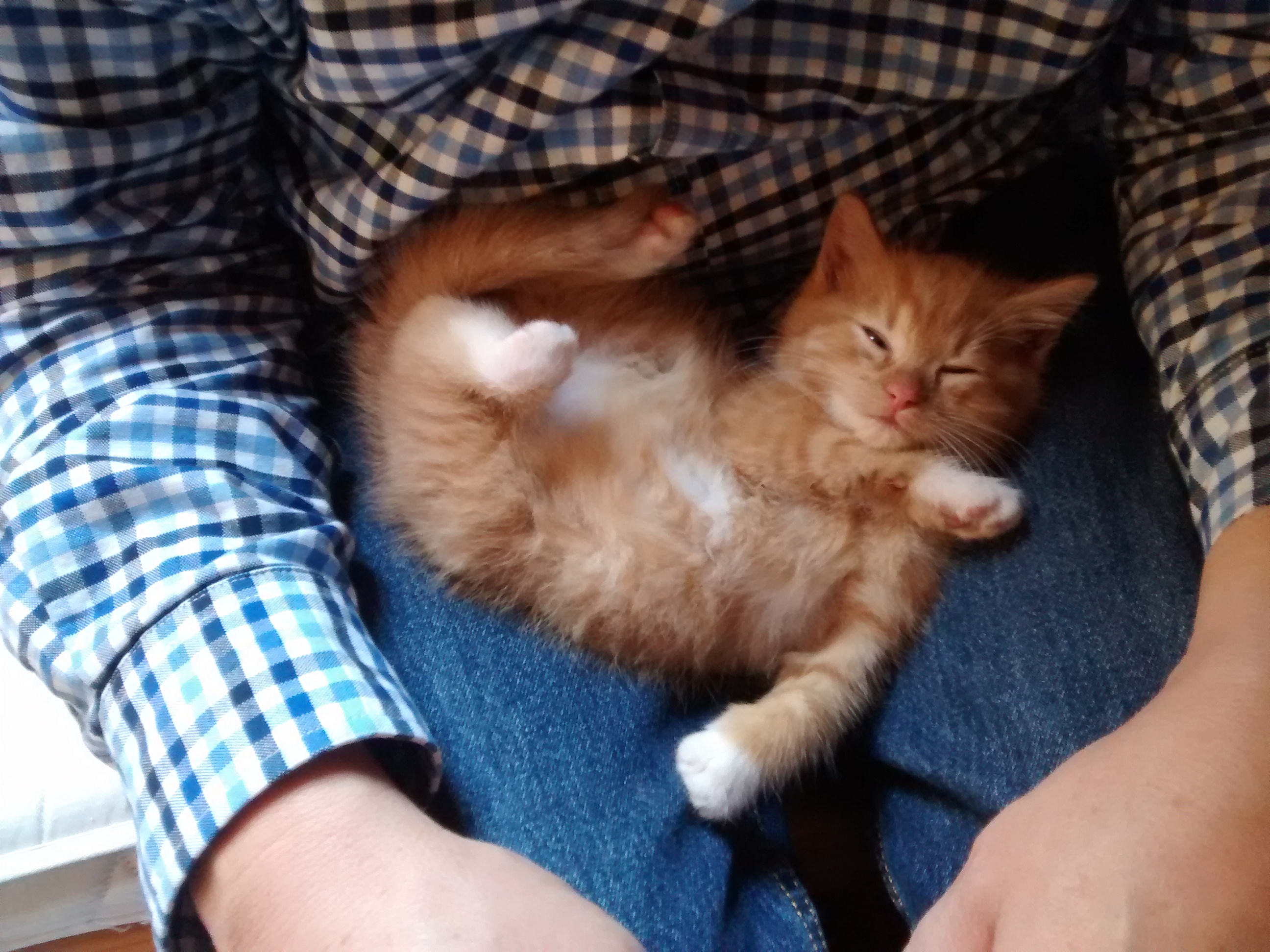 Mia je naším najmladším členom rodiny. Meno dostala najprv ženské. Ale keď sa zistilo, že je to kocúr, tak sa meno zmenilo na Mio. Každý ho/ju voláme ako sa nám zachce. Je to náš transgender kocúr/mačka. Doviezli sme ho/ju z farmy neďaleko Vlašimi.